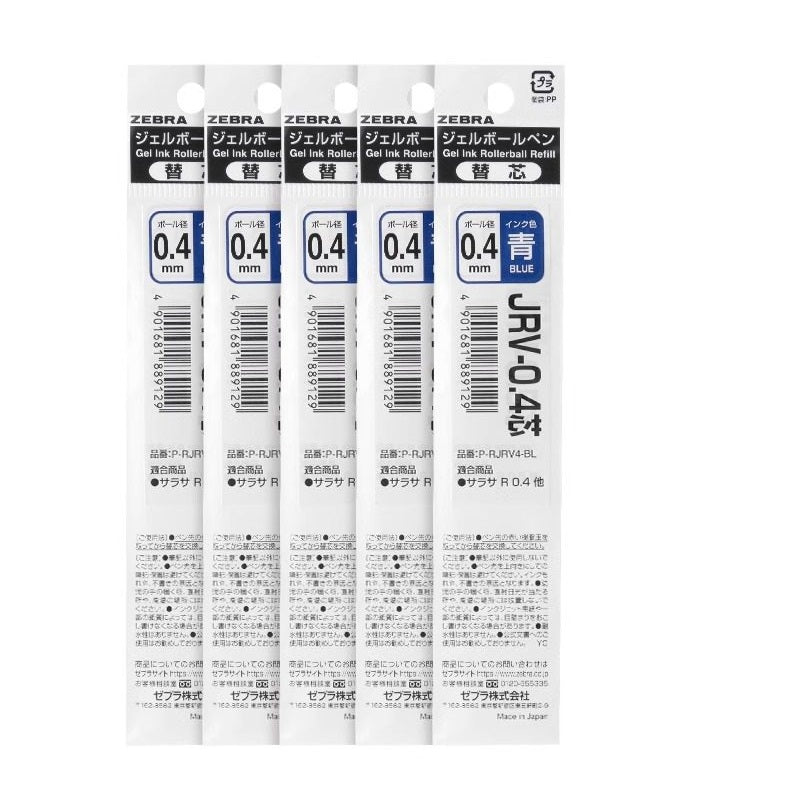 Zebra JRV-0,4 Sarasa R zseléstoll utántöltő - 0,4 mm - Fekete/Piros/Kék - 5 darabos csomag