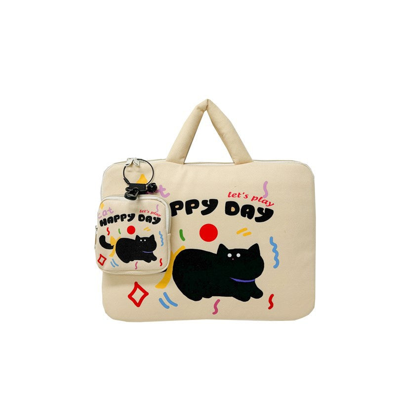 Custodia per laptop a tema gatto beige per MacBook da 14" e iPad da 11" – Interno morbido in peluche, protezione antiurto, set da 2 pezzi (custodia + pochette), due dimensioni disponibili