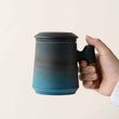 MATTE HAND SPRAYED TEXTURED GLAZE: This tea infuser mug is designed by professional artists, The eye-catching gradient blue glazed is hand-sprayed by artisan with a grainy textur while the interior glossy glaze that makes it easy to see the color of the warm tea. The artistic wooden handle design creates an
