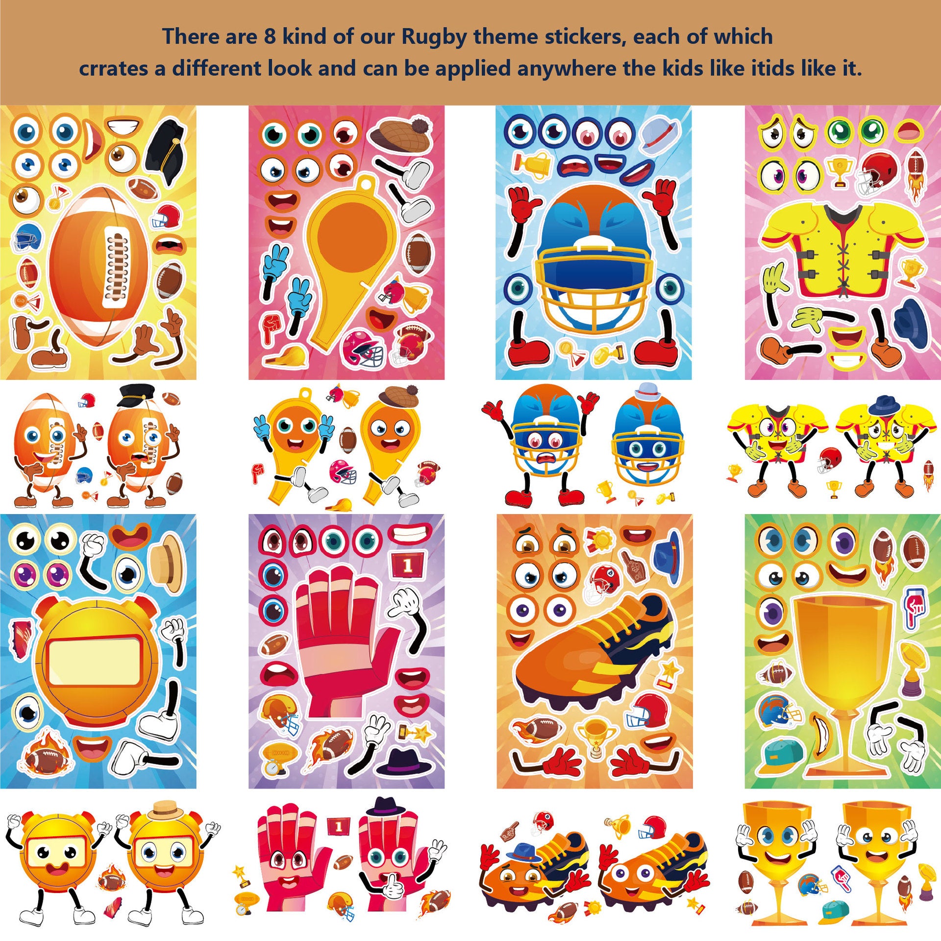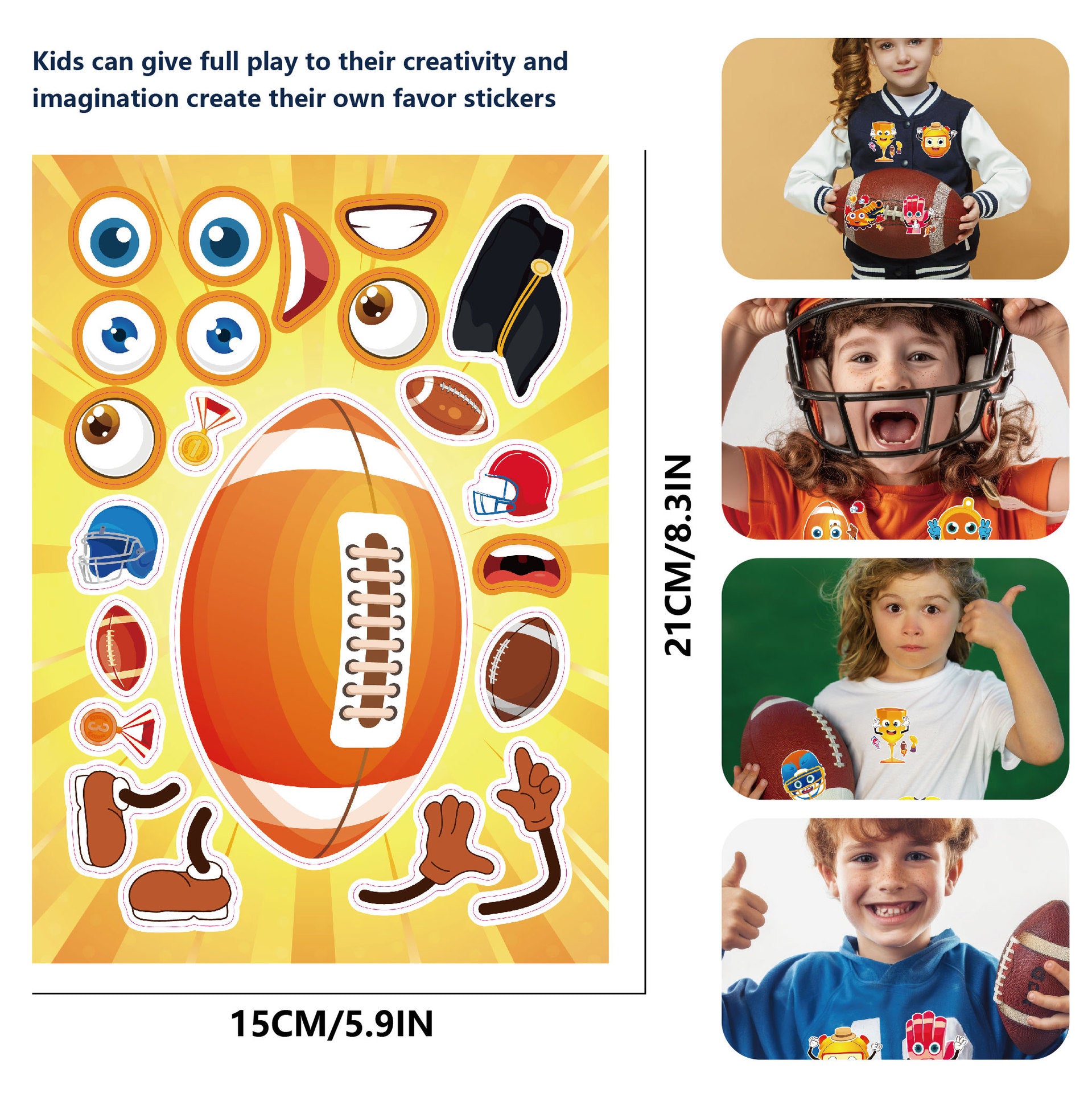 24 PEZZI Adesivi per creare volti 8,3"x5,9" per bambini, crea il tuo rugby cartone animato, bomboniere per feste, lavoretti per bambini, riempitivi per sacchetti regalo, premi per la classe