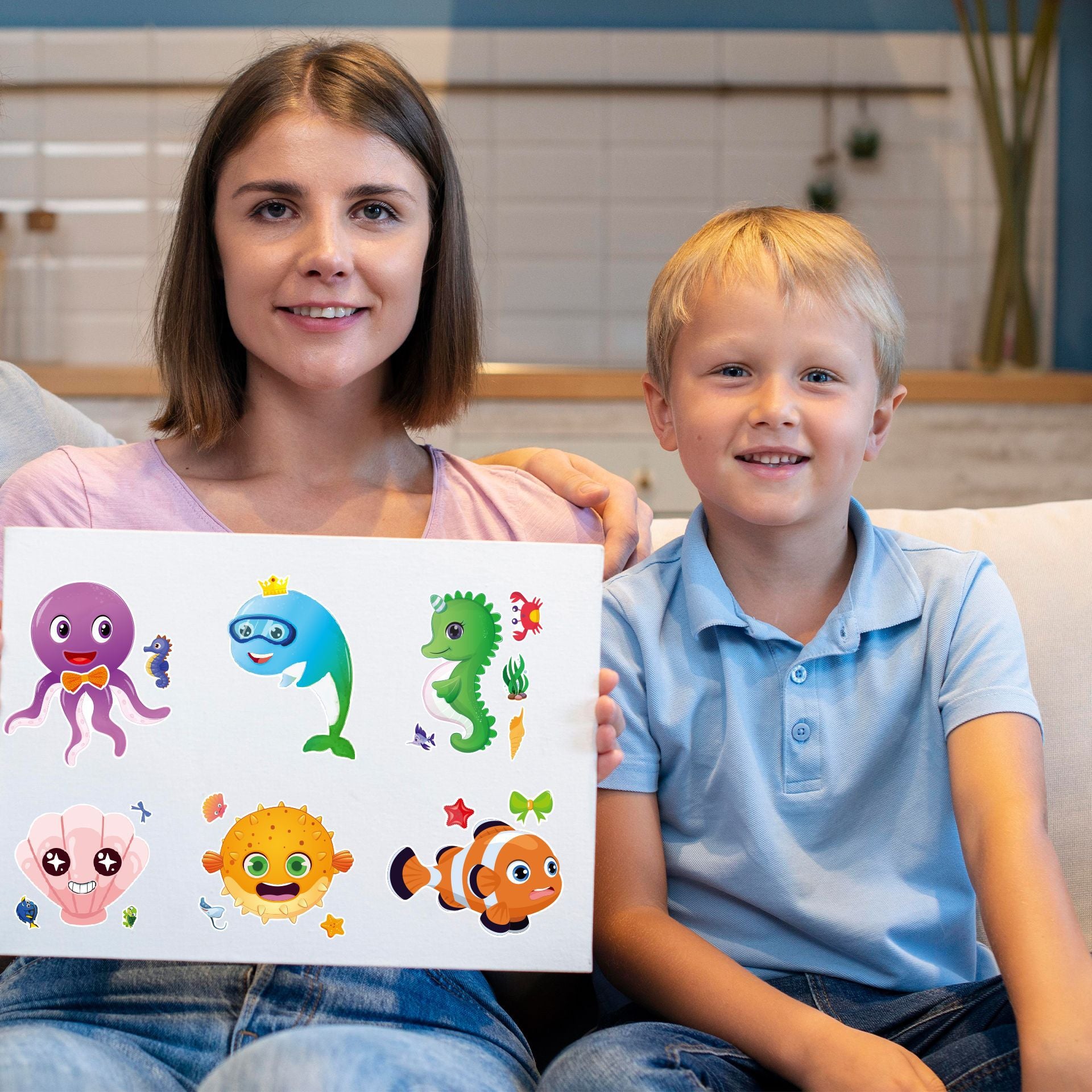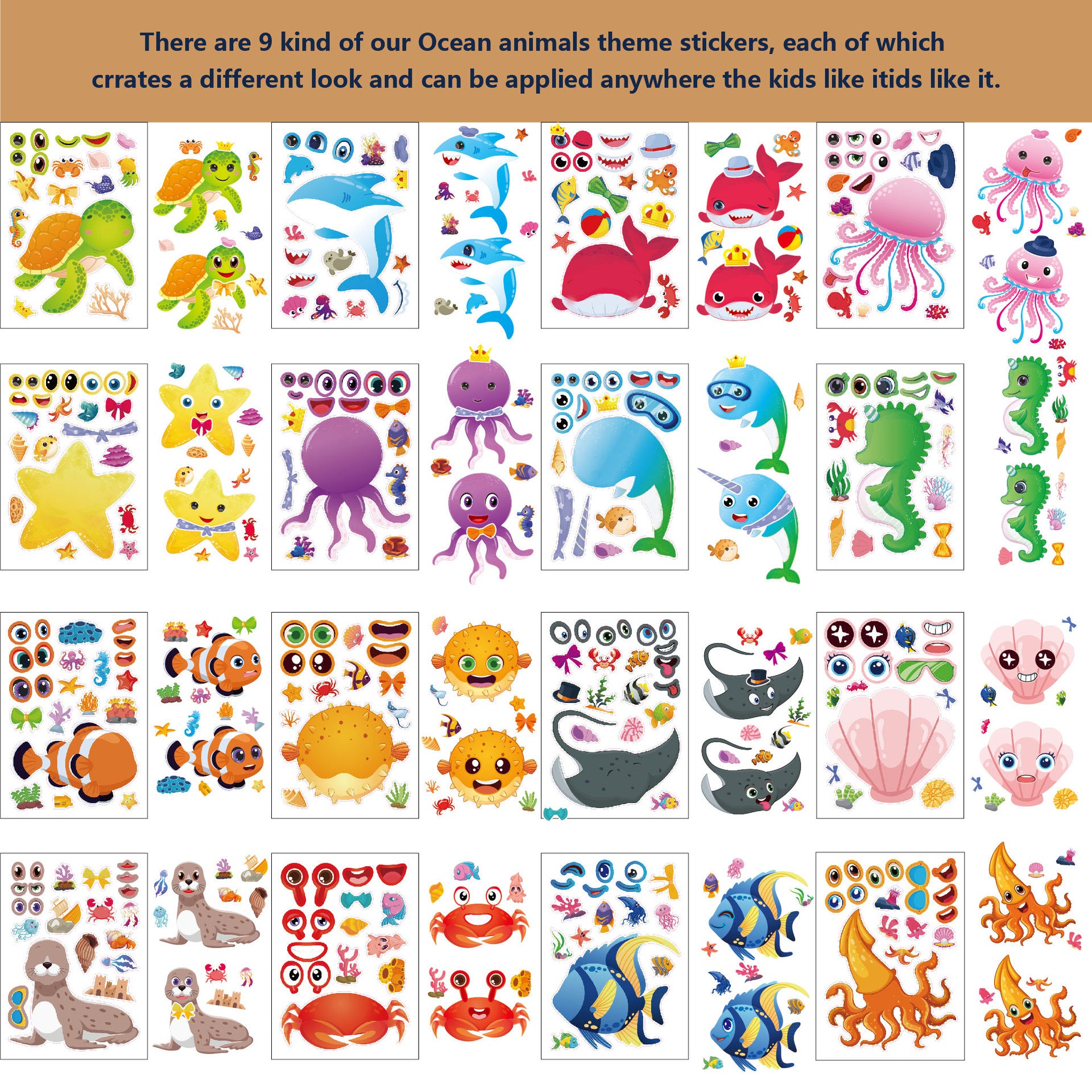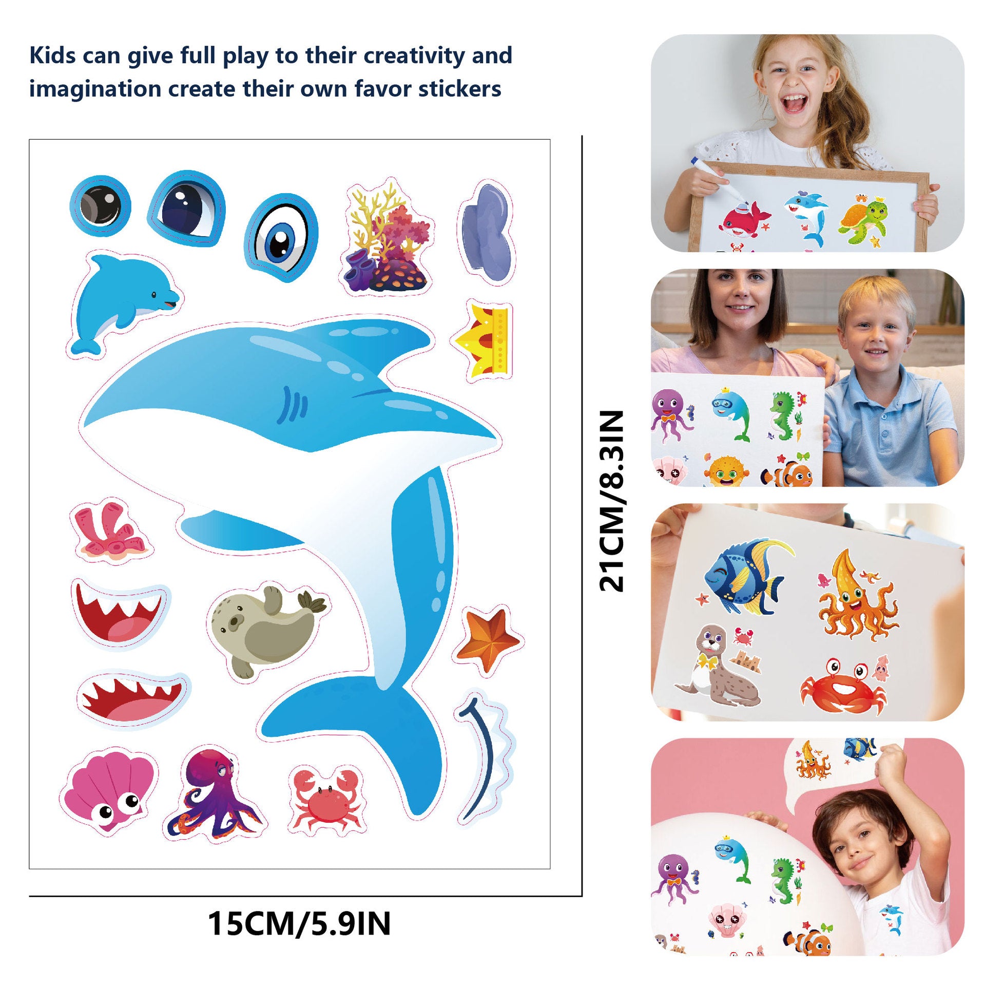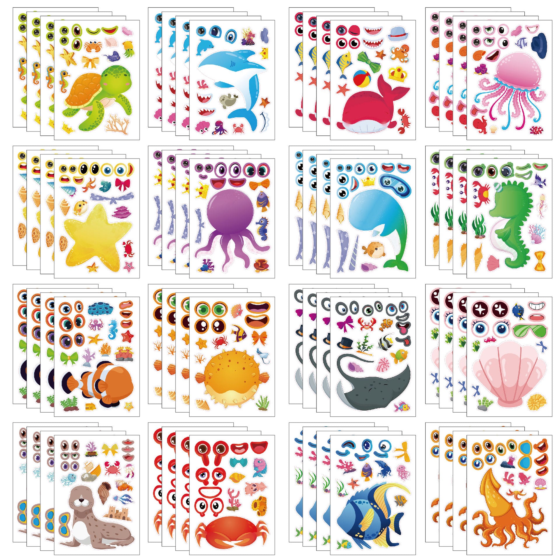 32 PEZZI Adesivi per creare volti 8,3"x5,9" per bambini, crea i tuoi animali marini, bomboniere per feste, lavoretti per bambini, riempitivi per sacchetti regalo, premi per la classe