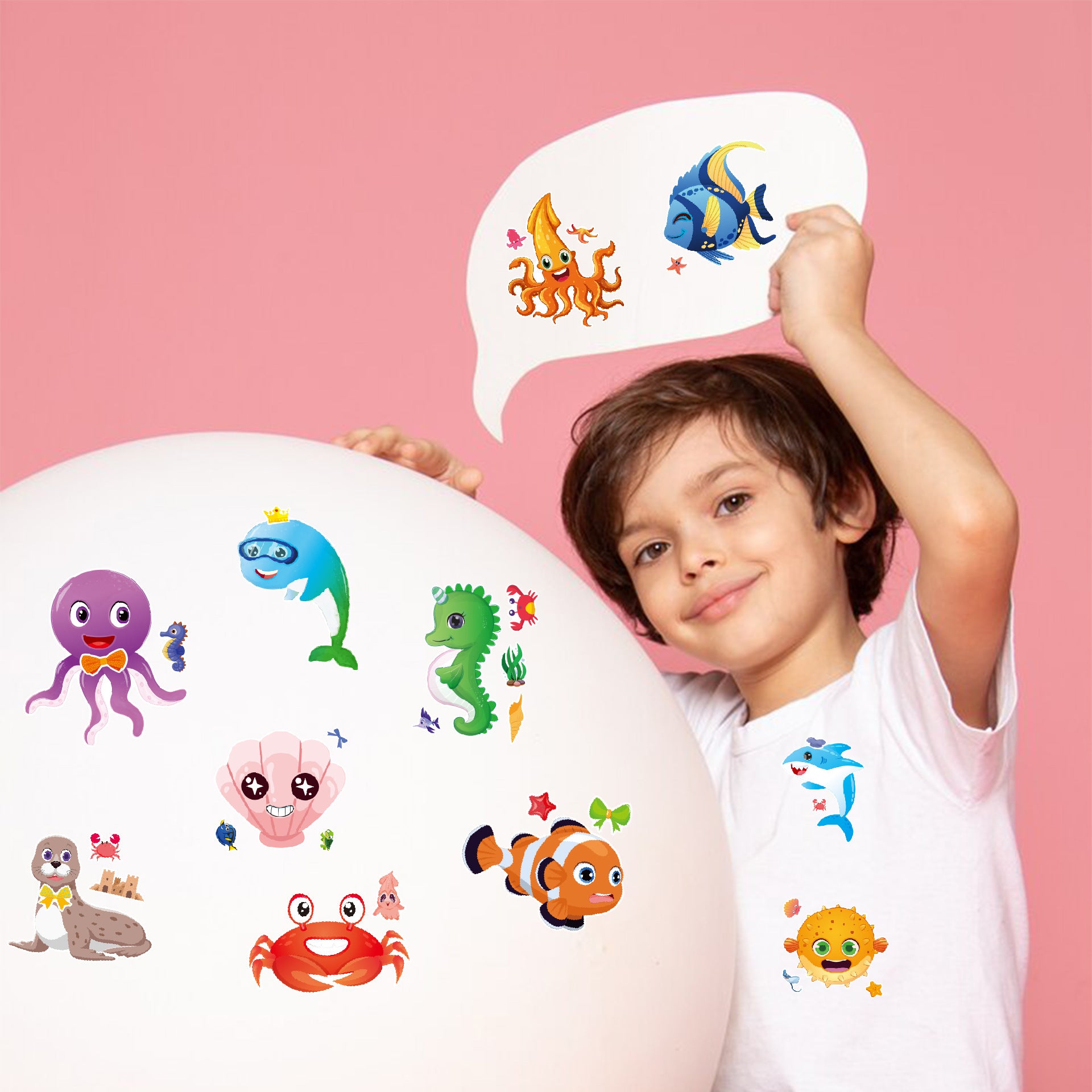 32 pezzi di adesivi a tema animali marini in stile cartone animato per feste, da mixare e abbinare per decorazioni. La confezione include 16 adesivi a tema cartone animato diversi.