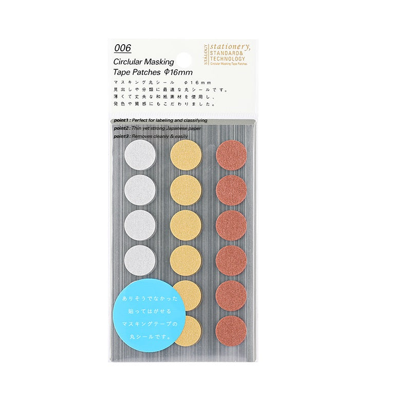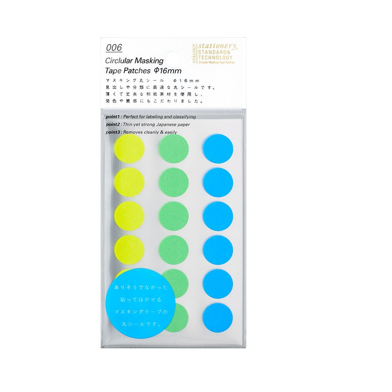 Semplifica la tua organizzazione e creatività con gli adesivi STALOGY Circlular Masking Tape Patches di Nitto. Realizzati in carta washi giapponese di alta qualità, questi adesivi minimalisti sono perfetti per planner, album di ritagli, etichette e altro.