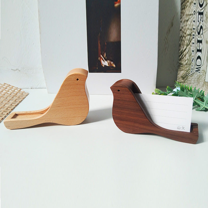 Porta biglietti da visita in legno per scrivania, supporto per biglietti a forma di uccello