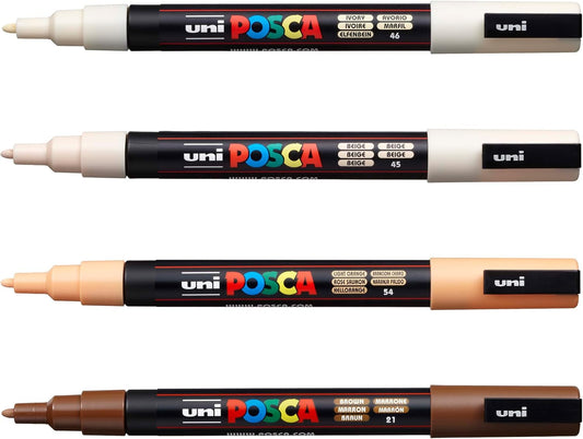 Posca verfmarkers set van 4 warme neutrale tinten; PC-3M fijne stiften met omkeerbare punten set...