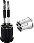 PRODUCTAFMETINGEN - De roterende revolverpenhouder is 2,4 inch hoog x 2,3 inch diameter. De ronde gleuf ervan heeft een diameter van 0,5 inch. Het ontwerp met zes afzonderlijke sleuven is groot genoeg om u te helpen pennen van verschillende grootte te bewaren.