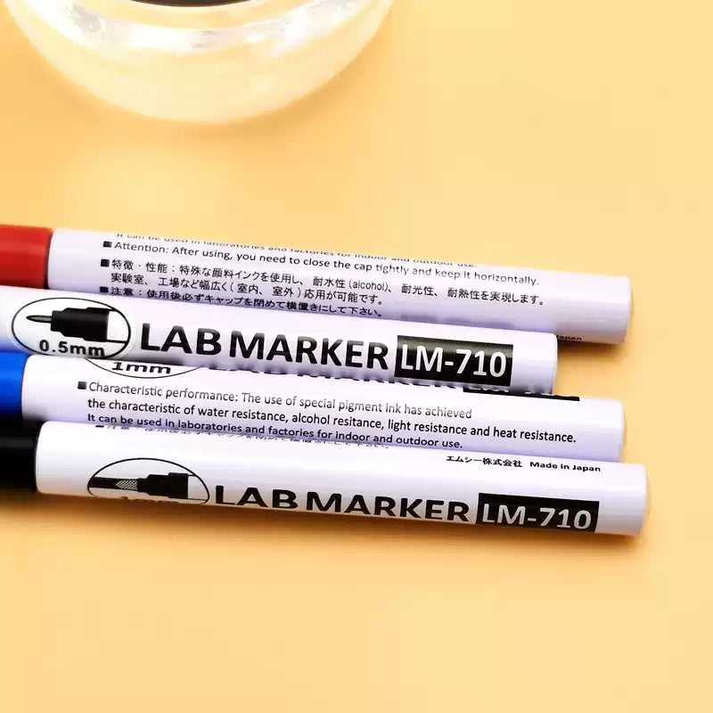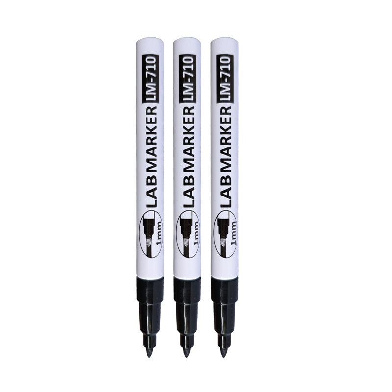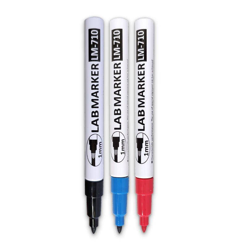 Asia-Tone LAB MARKER LM-710, ALCOHOL- & CHEMICALIËNBESTENDIG, UV-bestendig, Fijn Punt 0,5/1,0MM (3 Stuks) | Universele Laboratorium-, Industrie- en Professionele Etikettering op Glas, Plastic, Metaal & Natte Oppervlakken