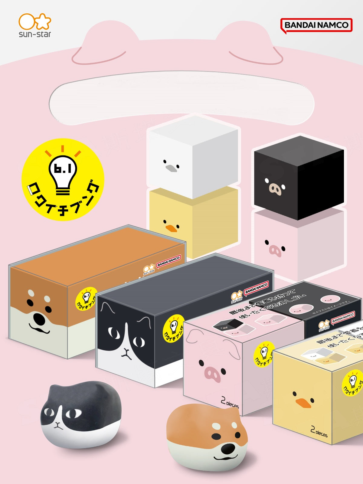 Sun-Star Animal Transformable Eraser Transforms with Use Cute Healing Tuxedo cat Shiba Inu Duckling Piglet