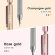 - Het potlood heeft een roségouden metalen behuizing die zowel duurzaam als elegant is.