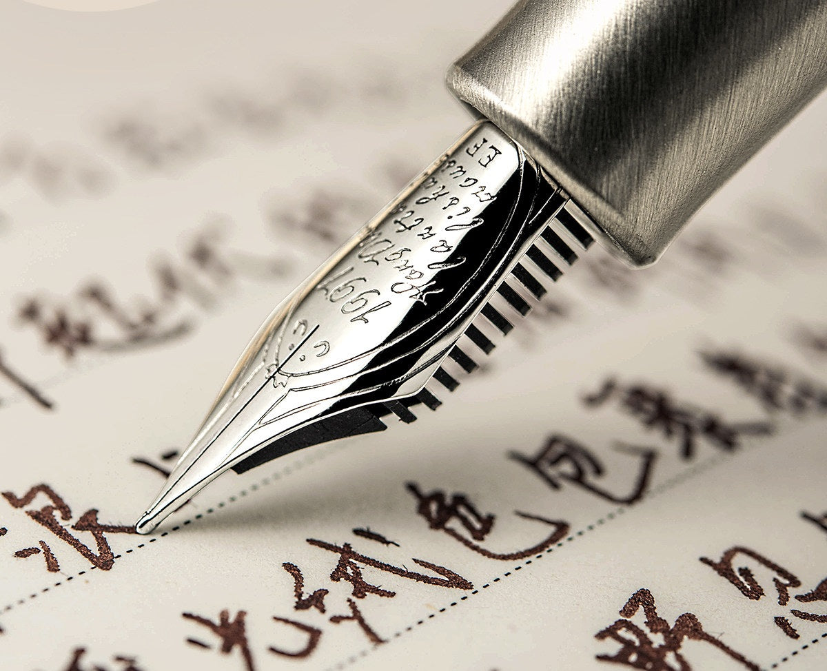 - Kleine Fude 0,6mm – een subtiele gebogen kalligrafiepenpunt die lijnvariatie produceert van dun tot medium afhankelijk van de schrijfhoek; perfect voor expressief schrijven, handtekeningen, handlettering en artistiek dagboekschrijven
