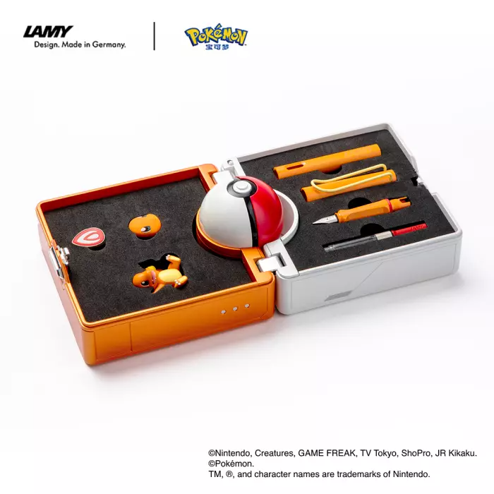 Deze gezamenlijke serie gebruikt de geliefde LAMY Safari vulpen als basis en heeft kleuren geïnspireerd op de bijbehorende Pokémon. Bij elke set horen penhoedbedels, een miniatuurfiguurtje, een Pokédex draagtas, een bureauonderlegger met terreinmotief en een Pokébal pennenhouder. Om het karaktericoon op de penhoed te gebruiken, bevestig je het eenvoudig aan de penclip, waardoor elke pen een bijzonder geschenk wordt. En net als in de Pokémon-wereld is een Pokébal een onmisbaar hulpmiddel voor elke trainer. Druk op de knop van dit speciale Pokébal-accessoire en het verandert slim in een bekerachtige pennenhouder.