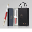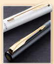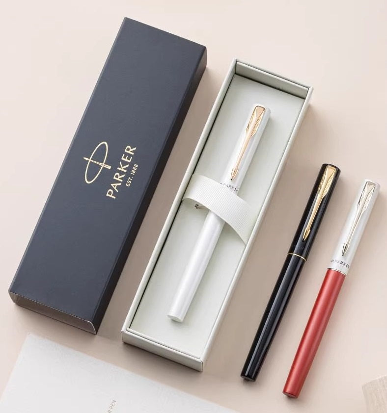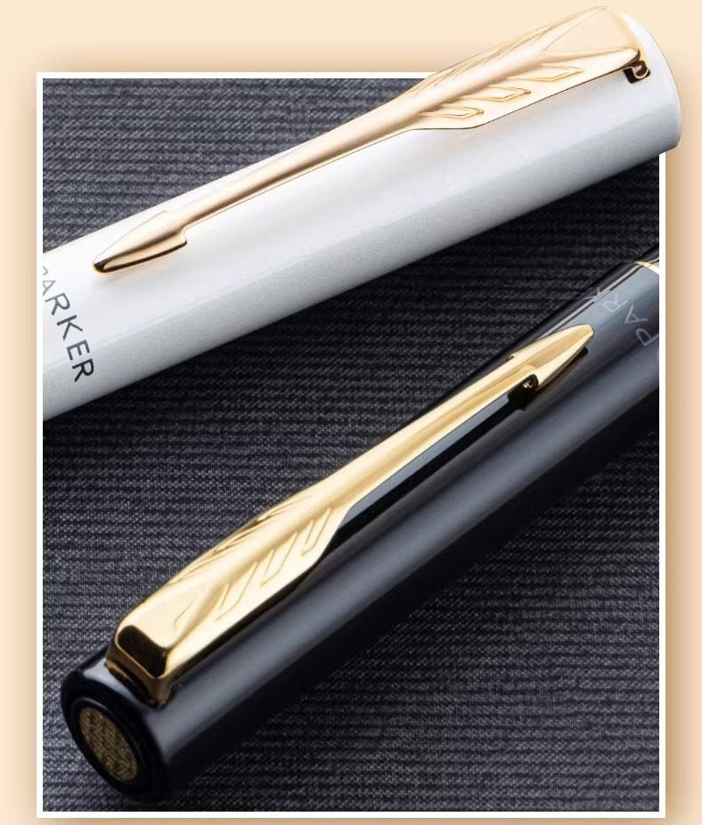 Satijnen metalen zwarte afwerking aangevuld met chromen accenten en de kenmerkende PARKER pijlklem