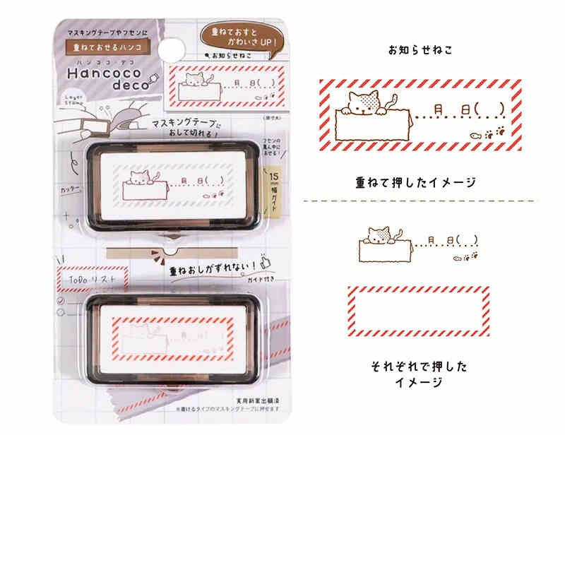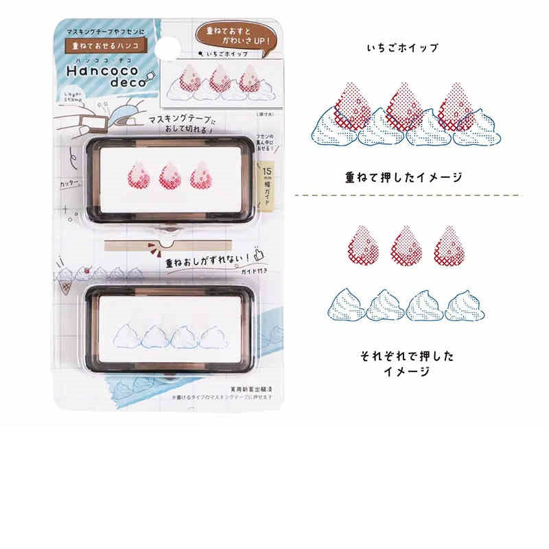Pieczątka Kutsuwa Hancoco Deco tworzy urocze, warstwowe wzory pieczątek. Idealna do dekorowania matowych taśm washi (polecamy taśmy mt "Kaku Kaku" lub "Write and Draw" z powierzchnią do pisania), listów, karteczek samoprzylepnych, planerów i innych. Pieczątka Hancoco posiada również wbudowany ząbkowany prowadnik/krawędź do cięcia odbitych taśm maskujących na schludną szerokość 5 cm oraz pomaga wycentrować wzory na karteczkach samoprzylepnych. Ta unikalna warstwowa pieczątka dodaje zabawny i kreatywny akcent każdemu papierowemu rękodziełu.