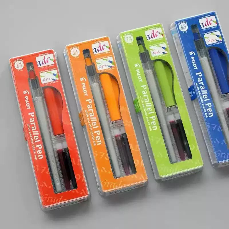 Mieszaj i dopasowuj: Możliwość napełniania różnorodnymi kolorami atramentu oraz dostępność w 4 szerokościach stalówek: 1,5 mm, 2,4 mm, 0,38 mm, 6,0 mm. Dotknij stalówek dwóch piór Parallel, aby połączyć kolory atramentu i stworzyć ombre