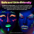 Versatile Illumination - Beyond Halloween, embrace Mardi Gras, masquerades, black light birthdays, and more. Ideal for festivals, school, church events, or daily makeup embellishment. Step into the glow and let your creativity thrive.