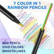 🌈【7 Color in 1 Rainbow Pencils】Multi-color core pencil with 7 colors in one pencil. Includes red, orange, yellow, green, teal, blue and purple for a beautiful rainbow of colors. Turn the pencil to get different colors. The colors that appear randomly will surprise you all the time. It is highly pigmented and will help you lay out color gradients or unique tones that won't fade over time.