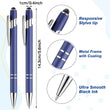 Modern nice-touch metal pens: these ballpoint pens have a responsive click action, bright finished barrel, matching colored capacitive stylus tip, and ultra-smooth black ink