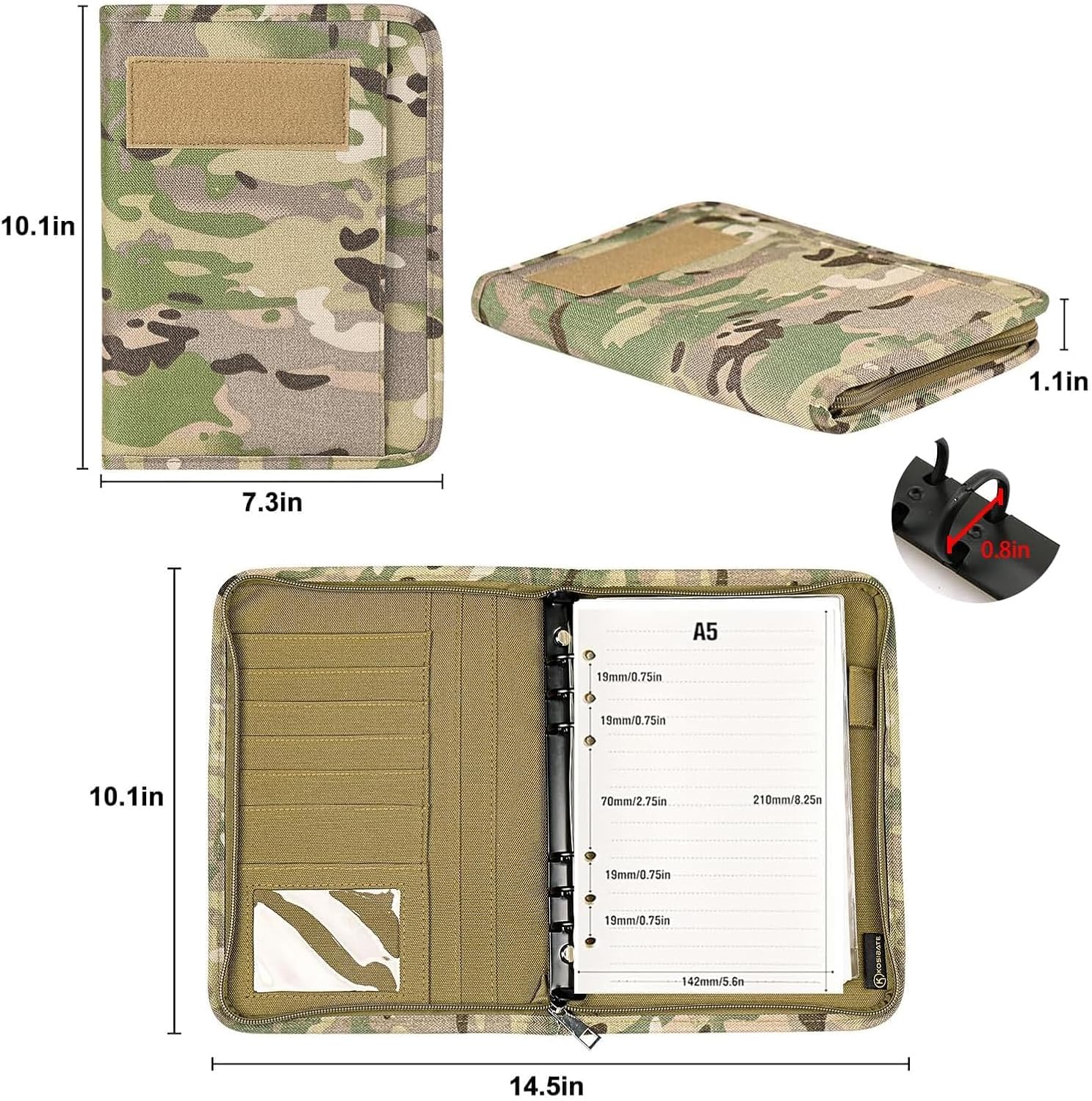 A5 Size Tactical Notebook Padfolio Ring Binder with 80 Sheets Paper