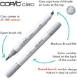 Dual Brush Tips for Versatile Coloring – Each Copic alcohol marker includes a Super Brush tip for fine details and blending, plus a Medium Broad tip for bold strokes. Ideal for creating skin tones, pastel blends, and vivid color transitions with ease.