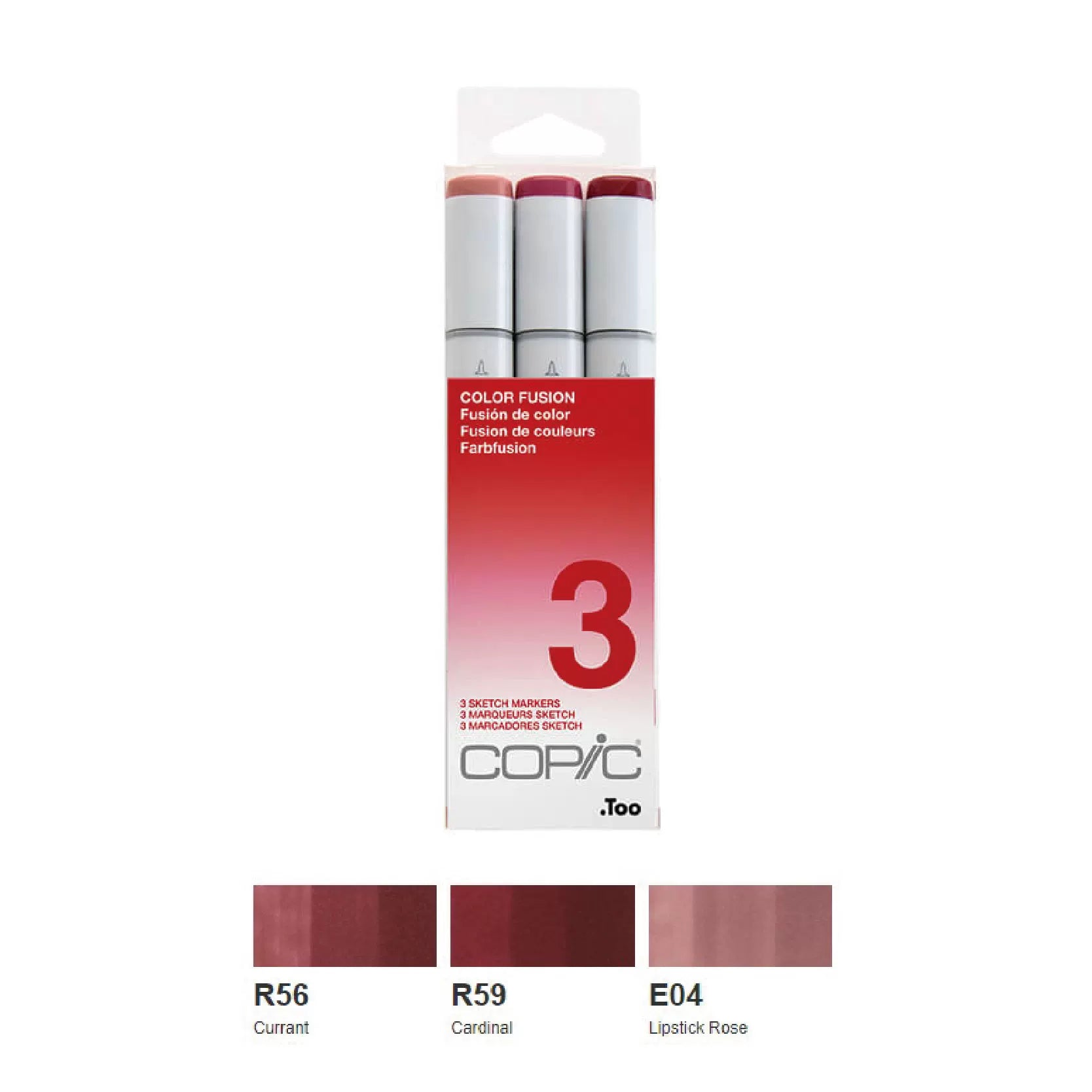 COPIC Sketch Fusion 3PC #3 includes: Lipstick Rose E04, Currant R56, and Cardinal R59