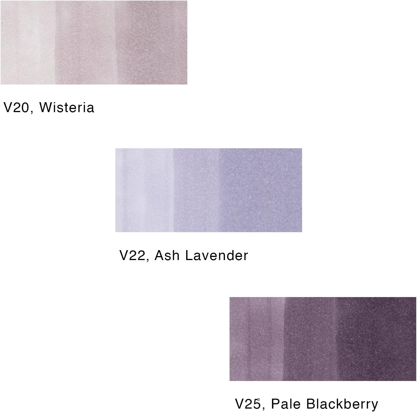 COPIC Sketch Fusion 3PC #1 includes: Wisteria V20, Ash Lavender V22, and Pale Blackberry V25