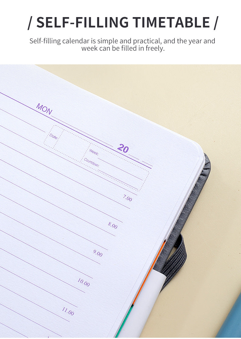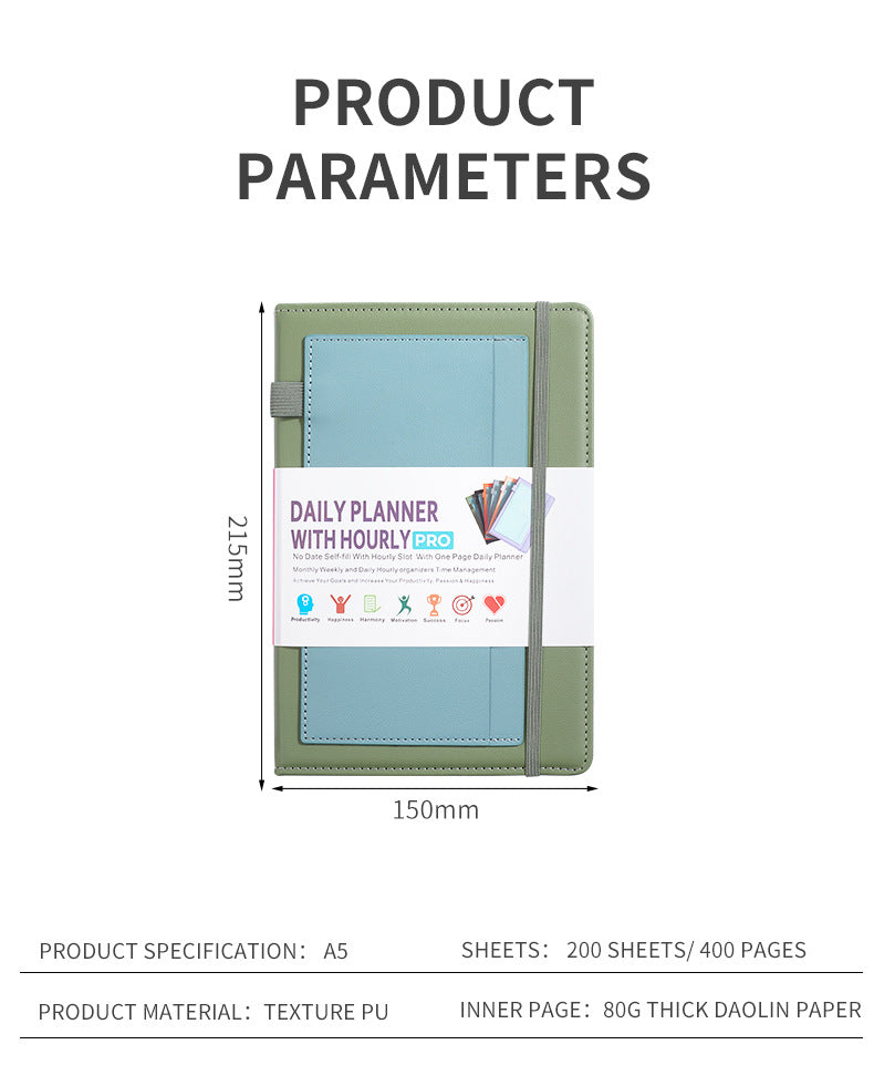 UNDATED, COLORFUL PAGES & PREMIUM MATERIALS: This time block planner lasts 6 months and has undated pages, with a new color scheme each month. The daily to-do planner comes in A5 format and measures 5.8 by 8.3 inches. This undated hourly planner has a premium vegan leather hardcover, 80gsm no-bleed paper, an elastic band, a pen loop, 2 ribbon bookmarks, and a pocket for loose notes. The time management planner comes with a gift box, 8 sheets of stickers, and a detailed user guide.