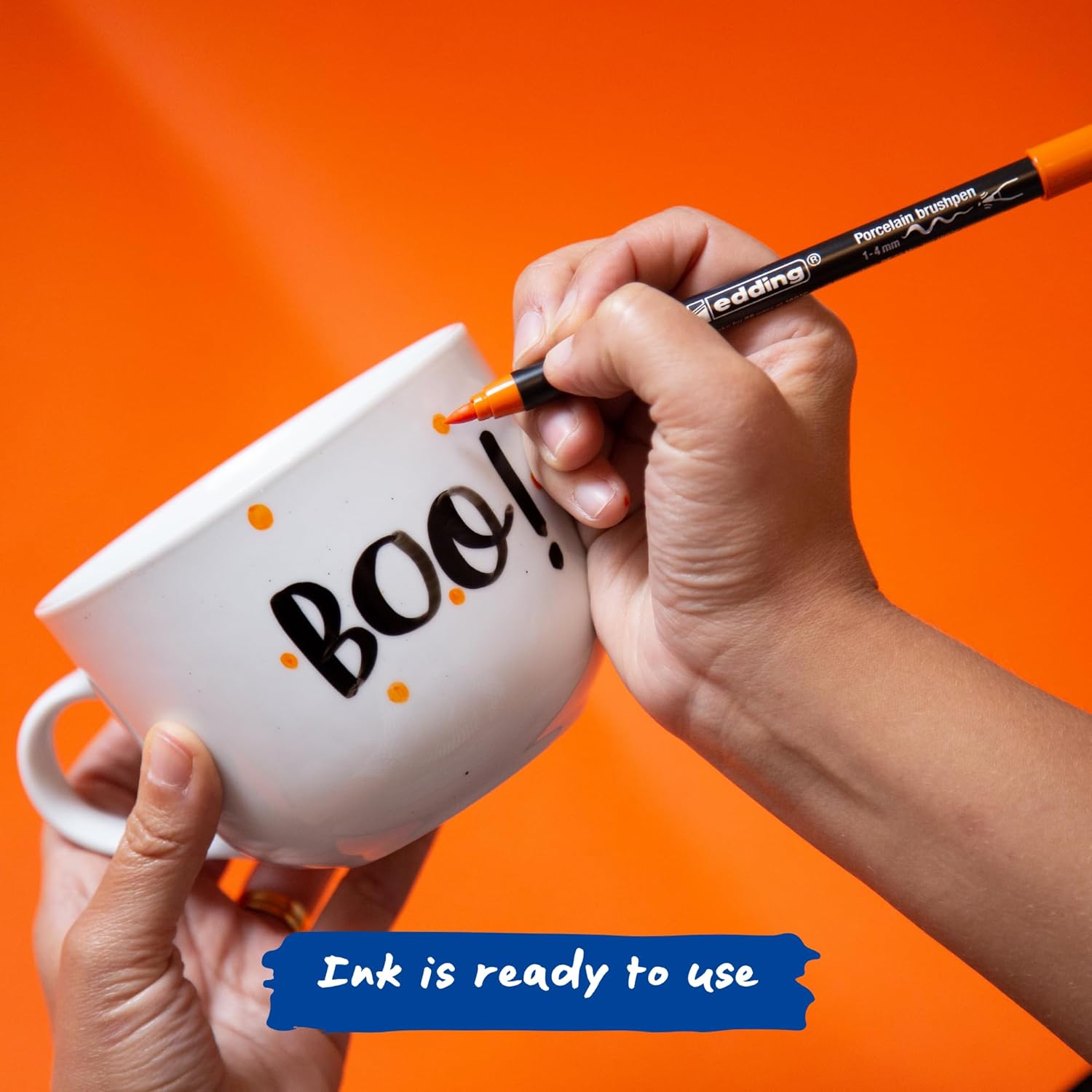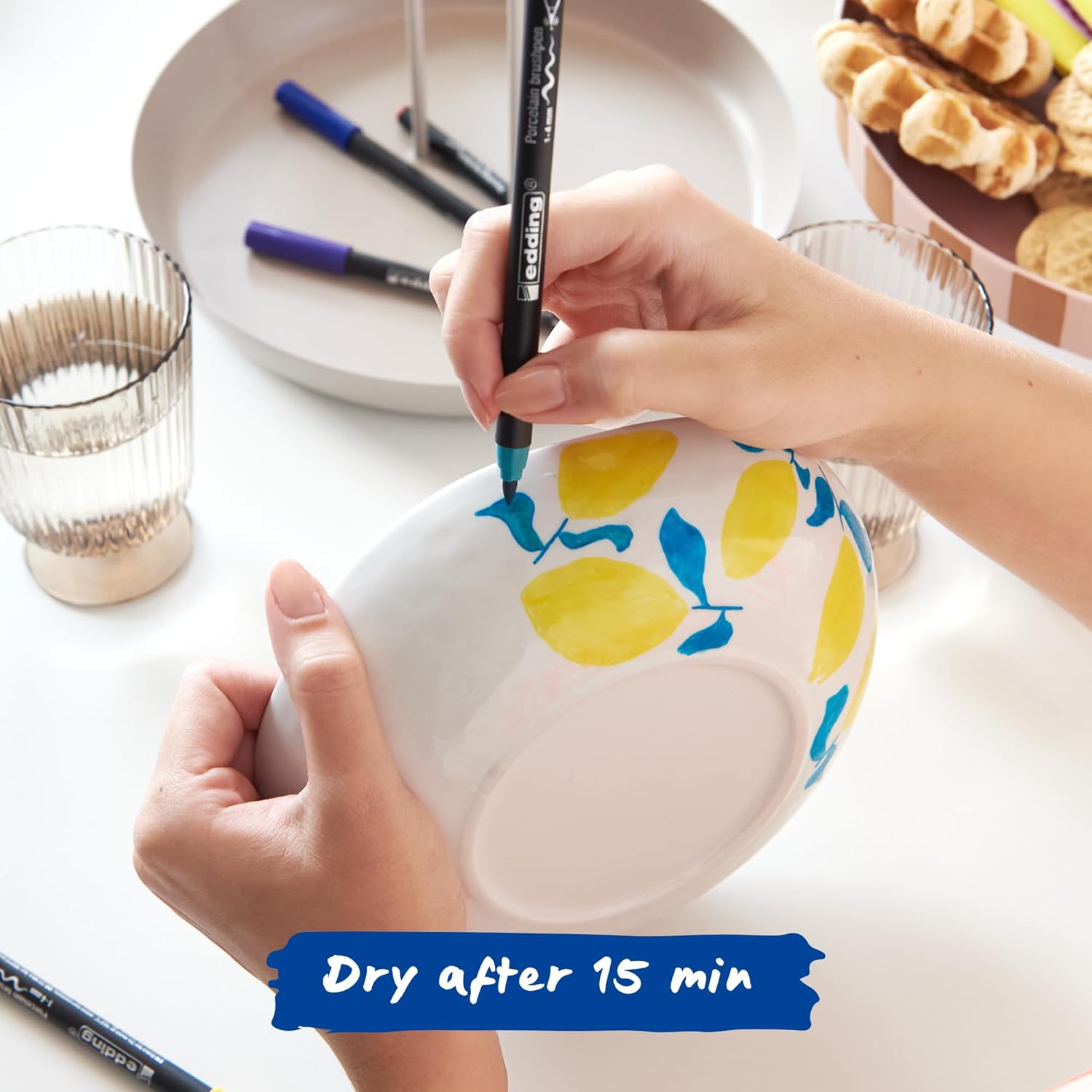 edding 4200 porcelain brush pen - 6 pens - brush nib 1-4 mm - felt-nib pen for painting and decorating ceramics, porcelain - dishwasher-safe, lightfast ink, quick-drying