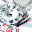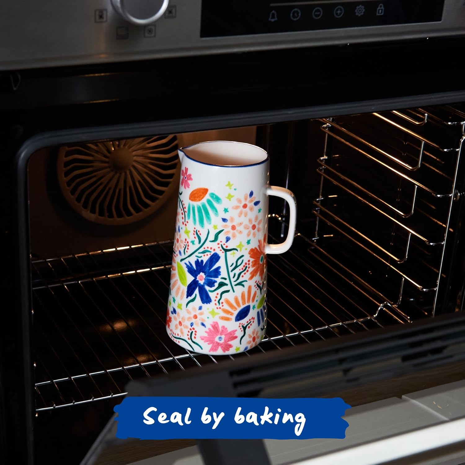 The water-based pigment ink dries quickly, yet can be easily modified before drying in the oven, after which the paint sticks permanently and becomes waterproof