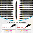 Dual-Tip Acrylic Paint Markers - Each acrylic pen has two types of tips: 1mm fine tip and 1-5mm round tip. 1mm fine tip for outlining and fine line work, 1-5mm round tip for large area coloring and painting.