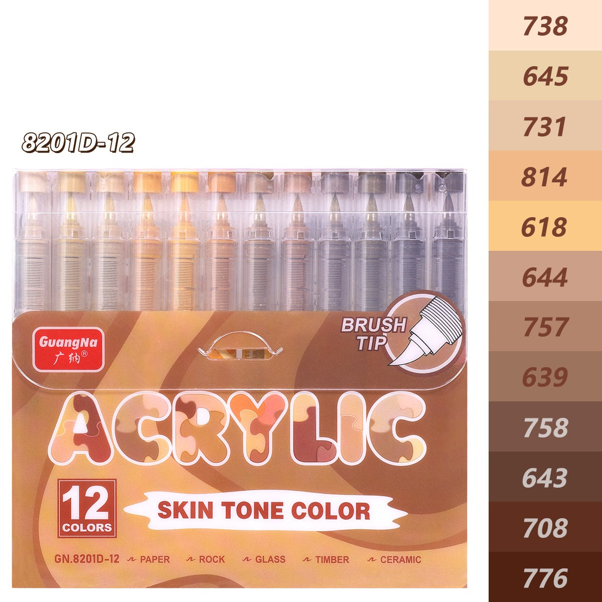 Guangna 8201 Acrylic Paint Markers 12 Skin Tone Colors Soft Brush Tip