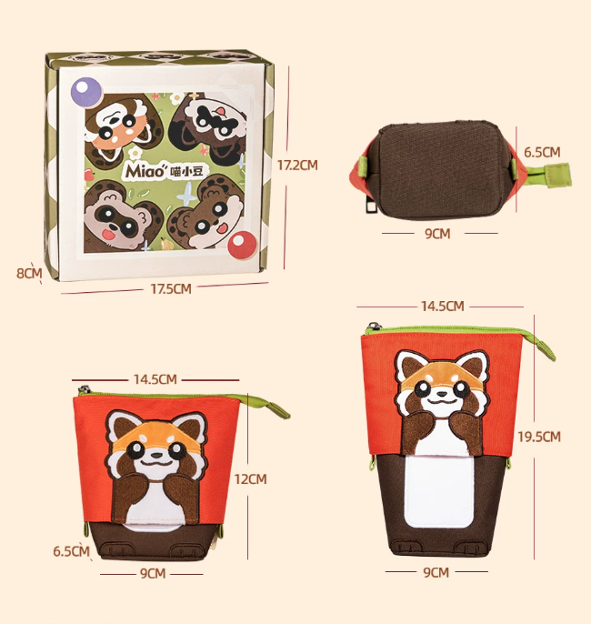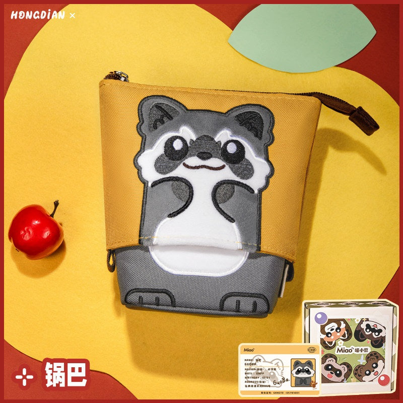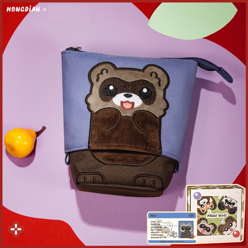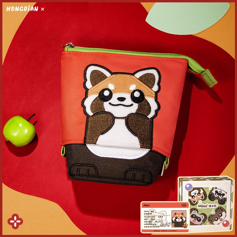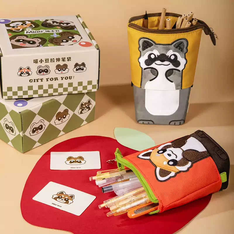 HONGDIAN Large Capacity Stand-Up Pencil Case Expandable – Cute Animal Red Panda Raccoon