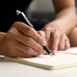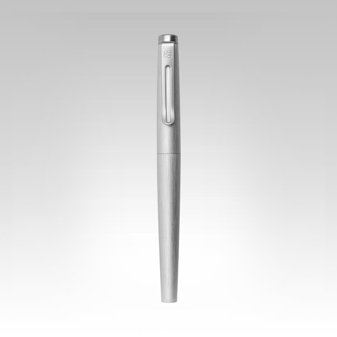 The Angle Roller Pen is crafted with a brushed aluminum technique designed to give a subtle texture to enhance your writing. Its full aluminum metal design is heavy in texture but light to the touch, providing long-term comfort for extended use.