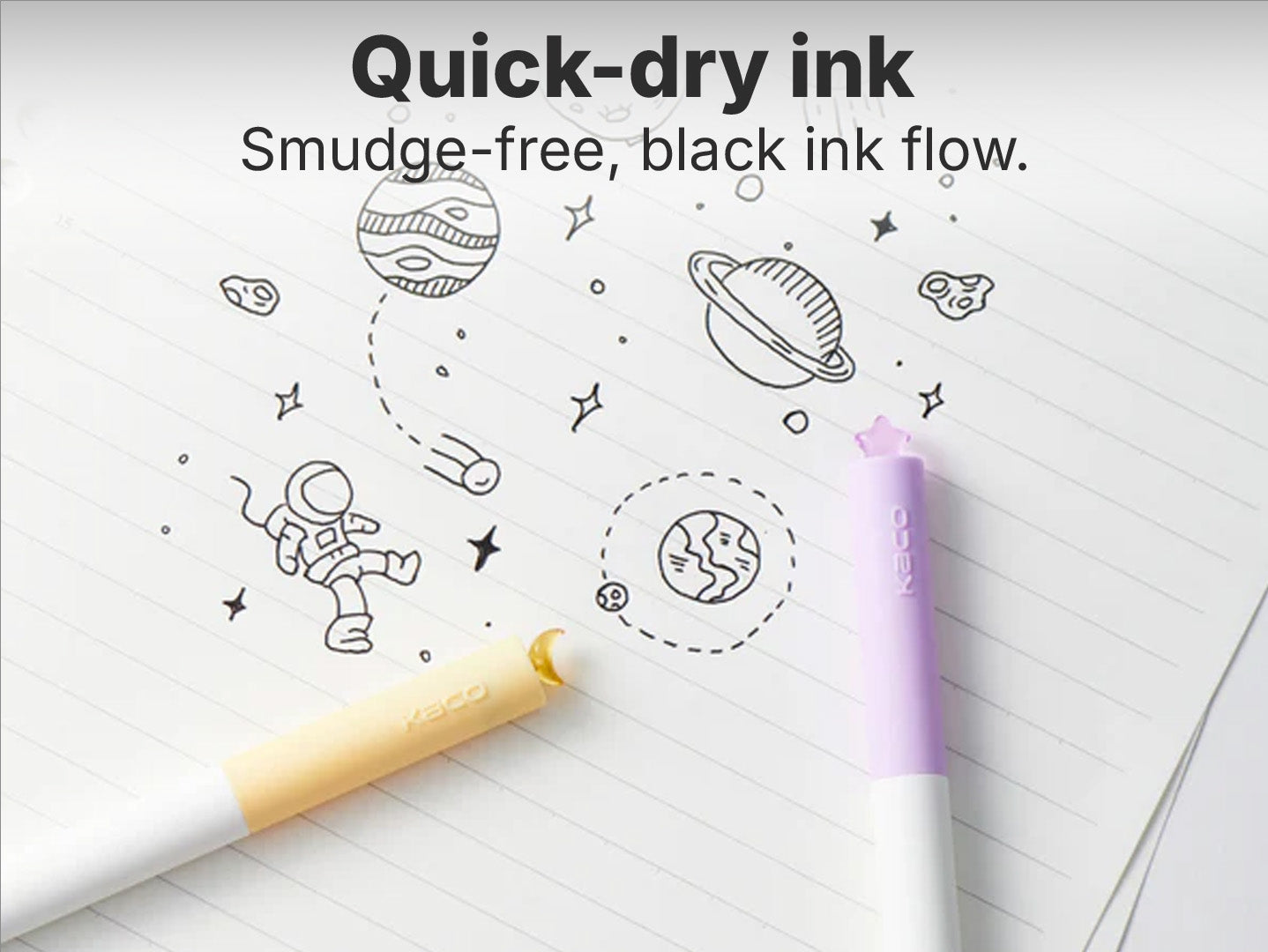 The Kaco First Roller Stars Gel Pen Set features a twist mechanism to reveal the nib, and when twisted a shape appears behind it. Great for writing, drawing, and calligraphy, its ergonomic design makes it comfortable and easy to use. A classic tool for any artist or writer.