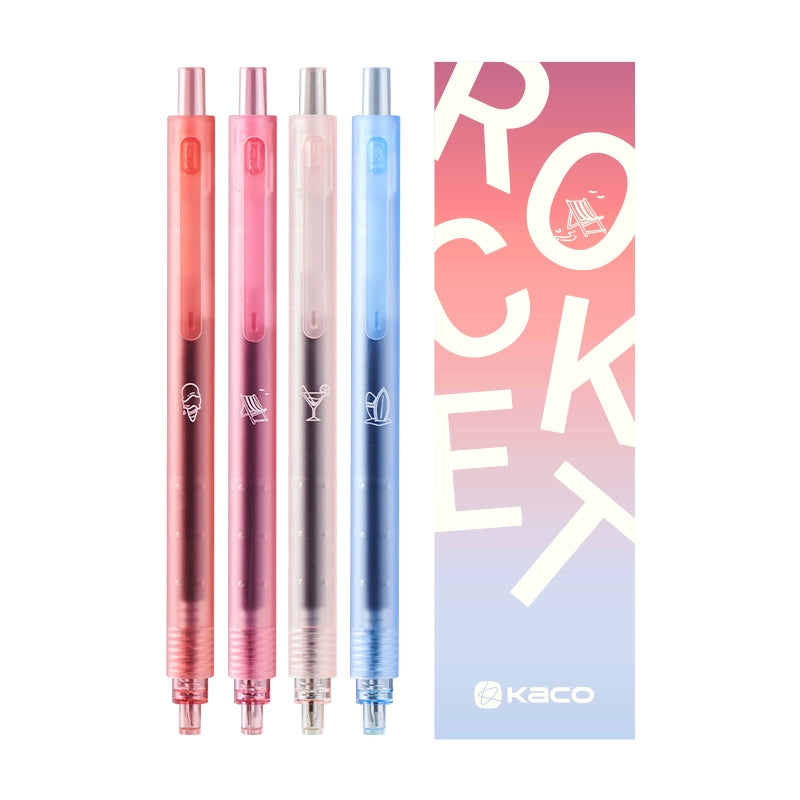 KACO Rocket Beach Sunset Gel Pen 0.5mm Black Ink 4 Pack