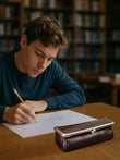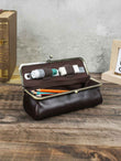 Leather Pencil Case - Full Grain Leather Pen Pouch - Stationery Bag Pen Holder for Work & Office