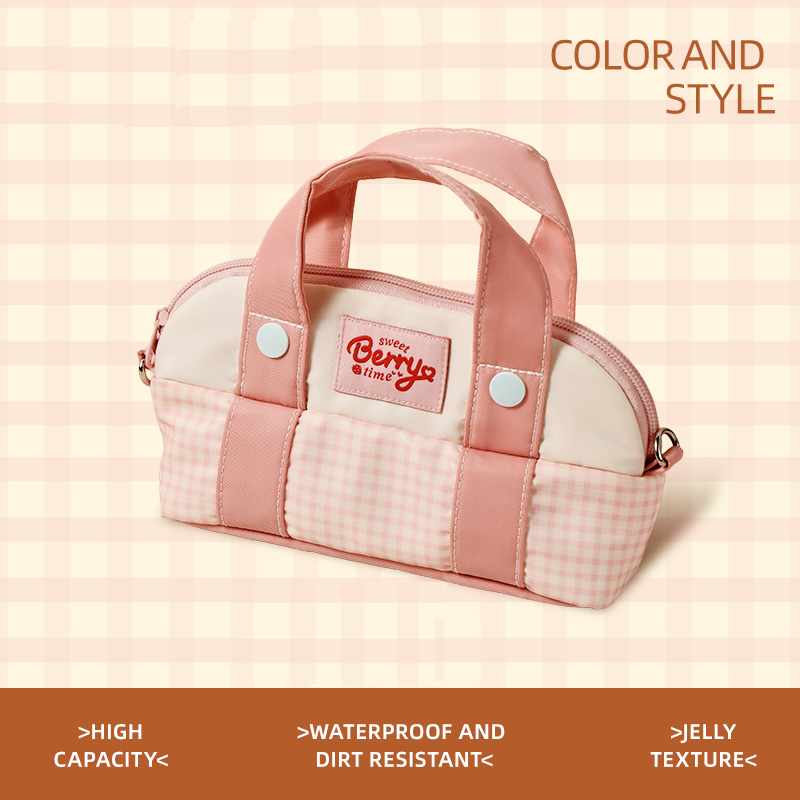 M&G Mobaggi Sweet Berry Time Handheld Pencil Case – Multi‑Function Stationery Bag & Makeup Pouch, Cute High‑Capacity Student Organizer in Vintage Style (Sweet Berry Pink / Denim Blue)