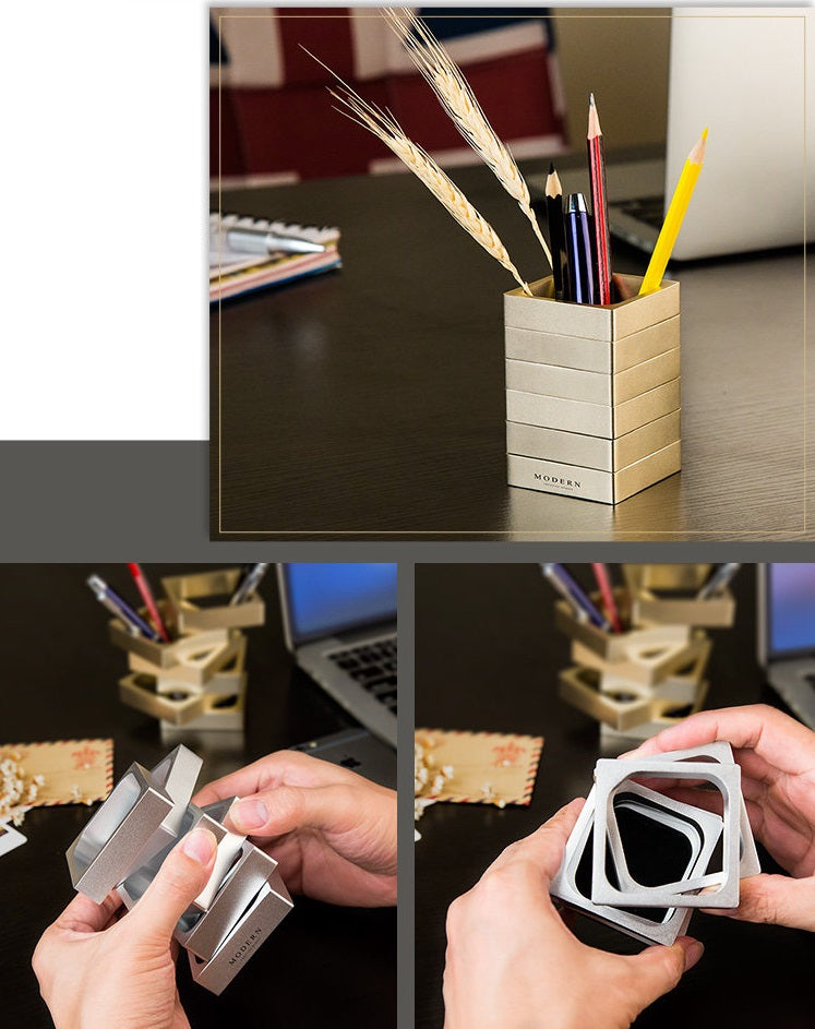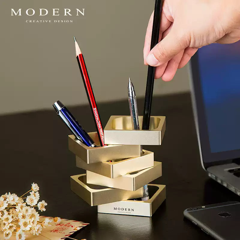Modern Rectangular Aluminum Multi‑Purpose Pen Holder