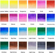 24 vibrant colours: Cadmium Yellow, Orange, Scarlet, Fuchsia, Purple, Ultramarine Blue, Sky Blue, Light Green, Sap Green, Sienna, Mid Grey, Black
