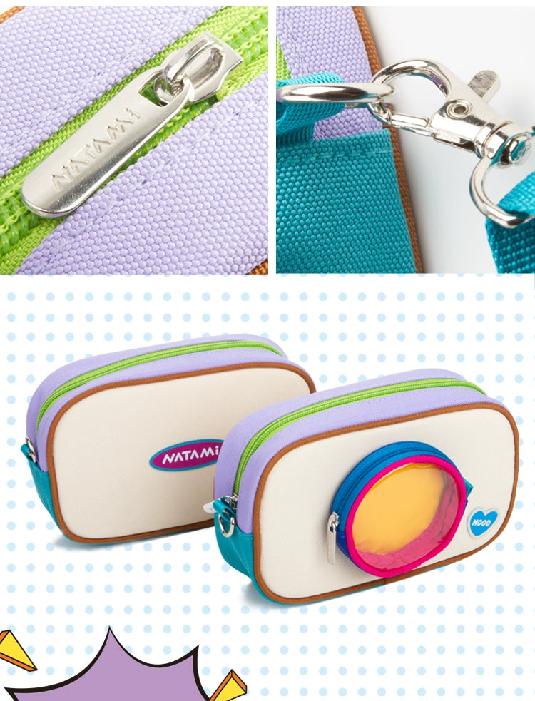 NATAMI Color-Block Camera-Style Pen Bag with Crossbody Strap