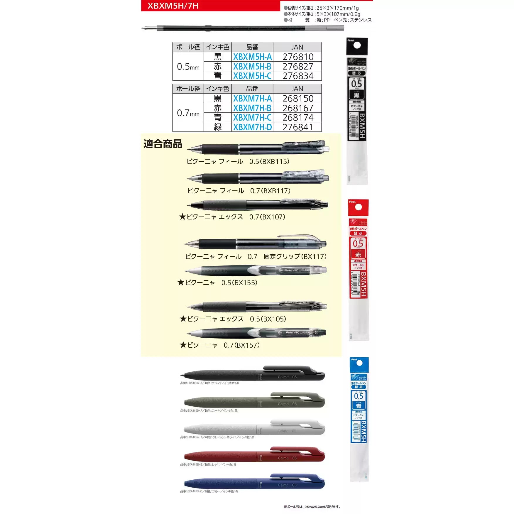 Pentel XBXM5H Ballpoint Pen Refill - 0.5 mm - Black/Blue/Red Ink - 5 Pack