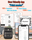 Transparent Label Printing- M110 updated printe compatible with clear labels. 100+free Templates- Phomemo-M110 Bluetooth label maker machine with more than 100+ free label templates also can create your own templates. Edit and typeset labels freely. The Icons are updated regularly.