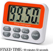 [ Clock + Timer(Count Down + Count Up) ] - FIXED TIME: 99 minutes 50 seconds. It will alarm for 1 minute, and the timer will continue to work showing counting up time, so you know how long time it passed after reaching 0. You can press any key to stop the alarm. Then it will show the last time setting.