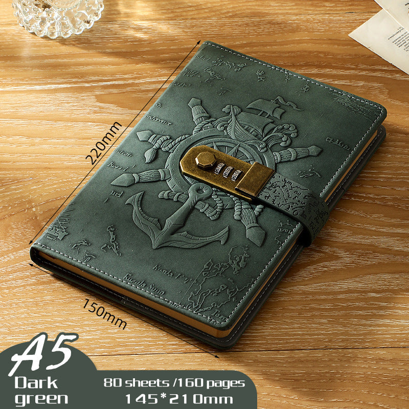 Retro Pirate Lock Diary 3D Carved European Style Locked Notebook A5