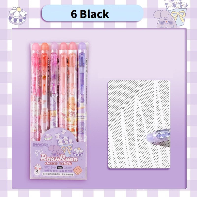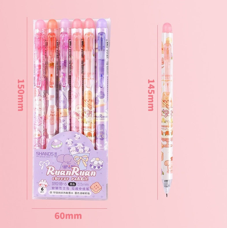 SHANDS Cheese Rabbit Erasable Gel Pens 12 Pack(6 Blue 6 Blue Ink)