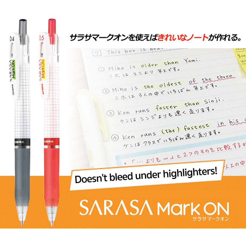 Zebra Sarasa Mark On Gel Pen - 0.5 mm - with 5pcs Black Ink Refills