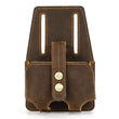 Suporte para Fita Métrica em Couro: O suporte para fita métrica é feito de couro, com rebites metálicos para reforço, projetado para manter a sua fita métrica segura e sempre ao alcance
