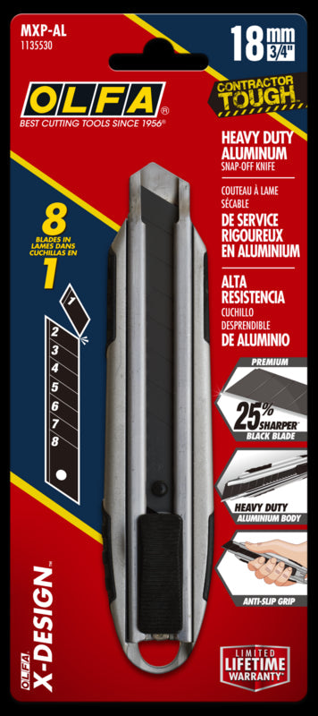 Faca OLFA 18mm MXP-AL com Cabo em Alumínio Fundido e Bloqueio Automático