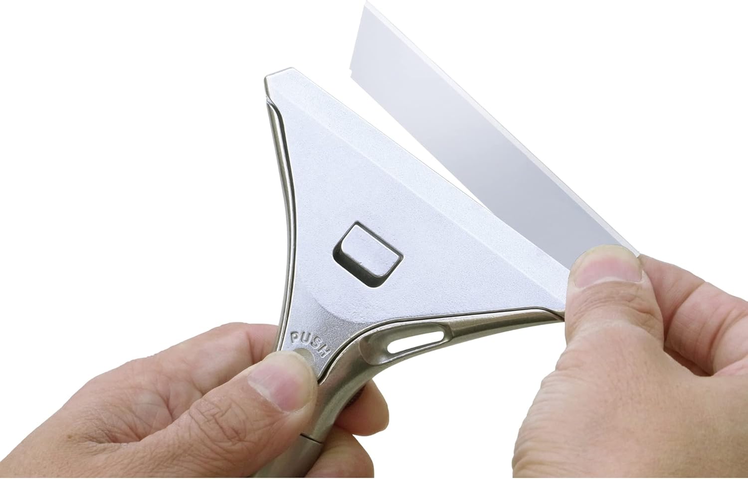 Trocar as lâminas é seguro e simples. O bloqueio por parafuso de polegar e a mandíbula sensível à pressão mantêm a lâmina na posição. Afrouxe o parafuso e pressione a liberação da mandíbula para remover a lâmina. Após instalar uma nova lâmina, aperte o parafuso e volte ao trabalho.