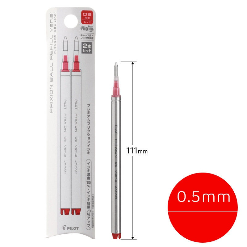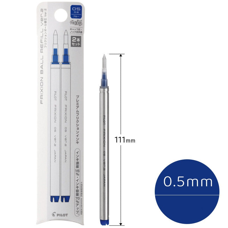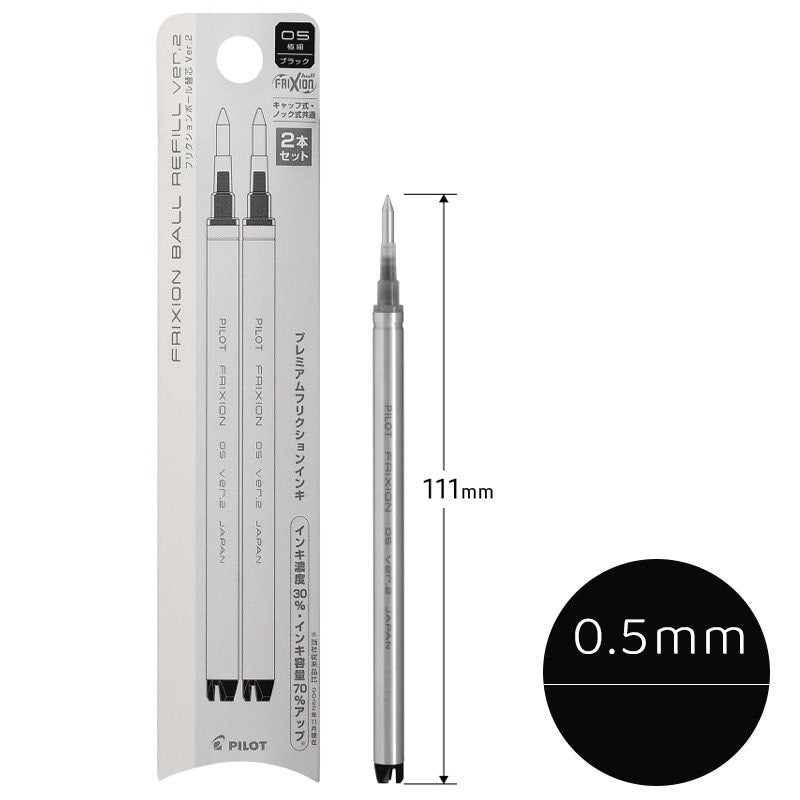 Este é um conjunto de 2 recargas FRIXION Ball Ver. 2, com diâmetro da esfera de 0,5 mm, contendo tinta FRIXION de qualidade superior.