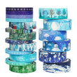 Conjunto de Fitas Washi de Vários Tamanhos - 19 rolos por unidade, (5mm de largura) x 8 rolos, (10mm de largura) x 5 rolos, (15mm de largura) x 6 rolos, todas as fitas têm 5m de comprimento por rolo.